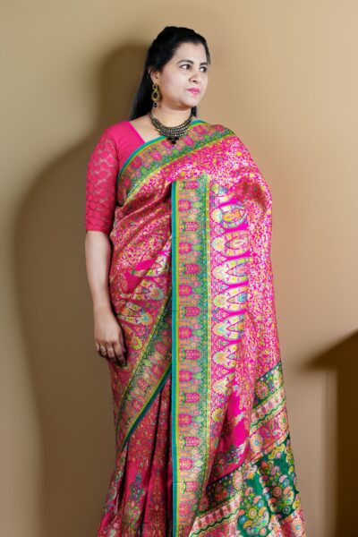 Designer Pink Kani Jamawar Silk Saree | Floral Weave
