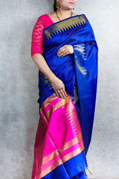 Indigo Blue Banarasi Silk Saree with Meenakari Work | Elegant Festive & Wedding Wear