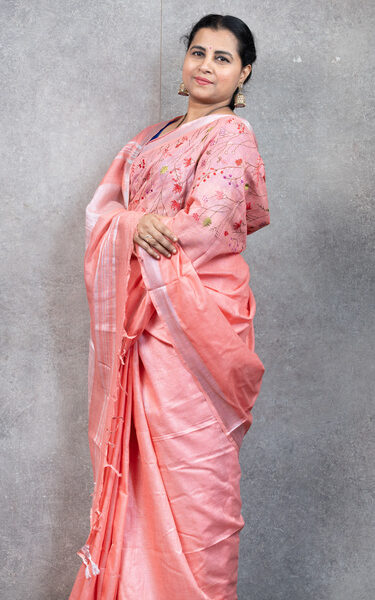 Pink | Patteda Anchu Saree | Pure 100% Cotton Handloom made