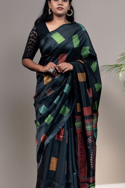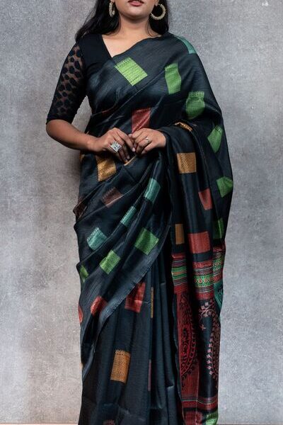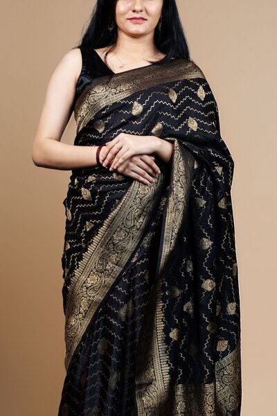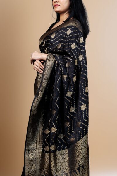 Elegant Black Banarasi Silk Saree – Timeless Luxury