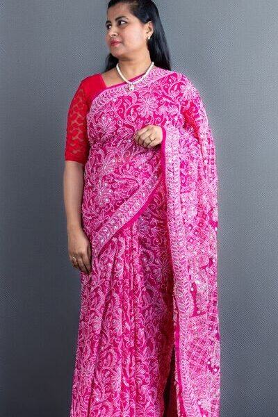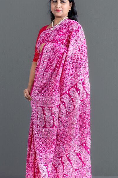 Hand-Embroidered Chikankari Saree with Gota Patti Work | Multiple Colours