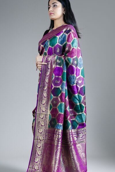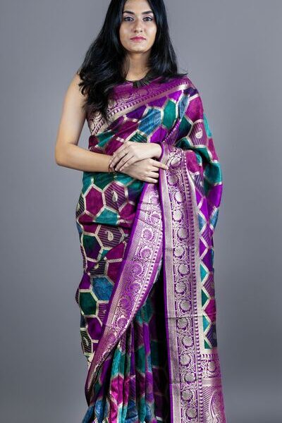 Royal Mashru Banarasi Silk Saree | Rangkar style with Zari Pallu