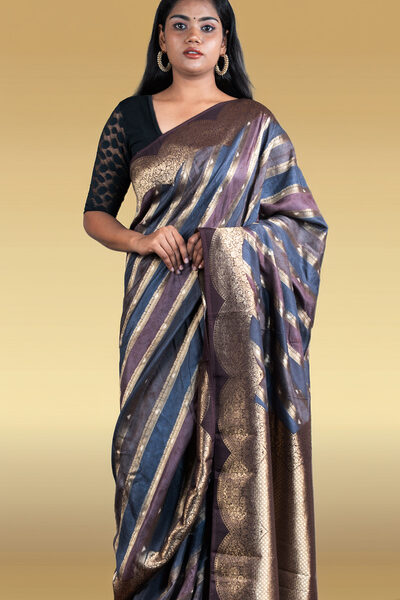 Black Dual-Tone Banarasi Silk Saree with Metallic Sheen| Zari Brocade & Rich Pallu