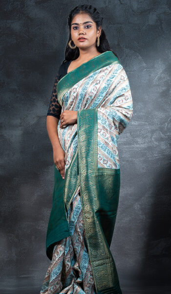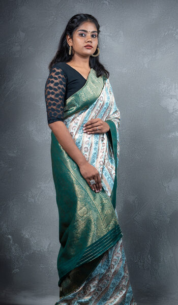 Dark Green Zari Woven Soft Silk Saree with Butti |Designer Border & Intricate Zari Pallu