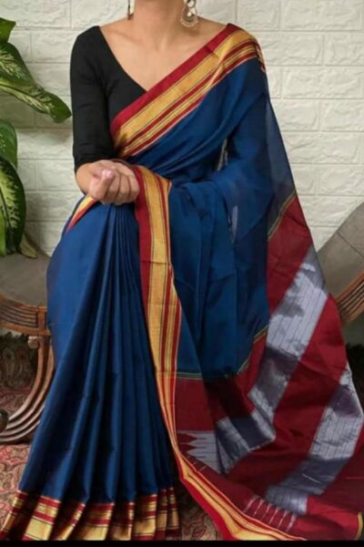 Traditional Mercerised Pure Cotton handloom Saree -Broad border